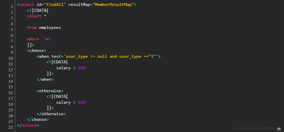 하지만 MyBatis를 사용하는 경우 SQL문에서 대소비교에 사용되는 < = > ! 등을 사용할 때