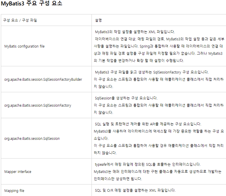 SQL쿼리들을 한 구성파일에 구성하여 프로그램 코드와 SQL을 분리할 수 있는 장점을 가지고 있다.